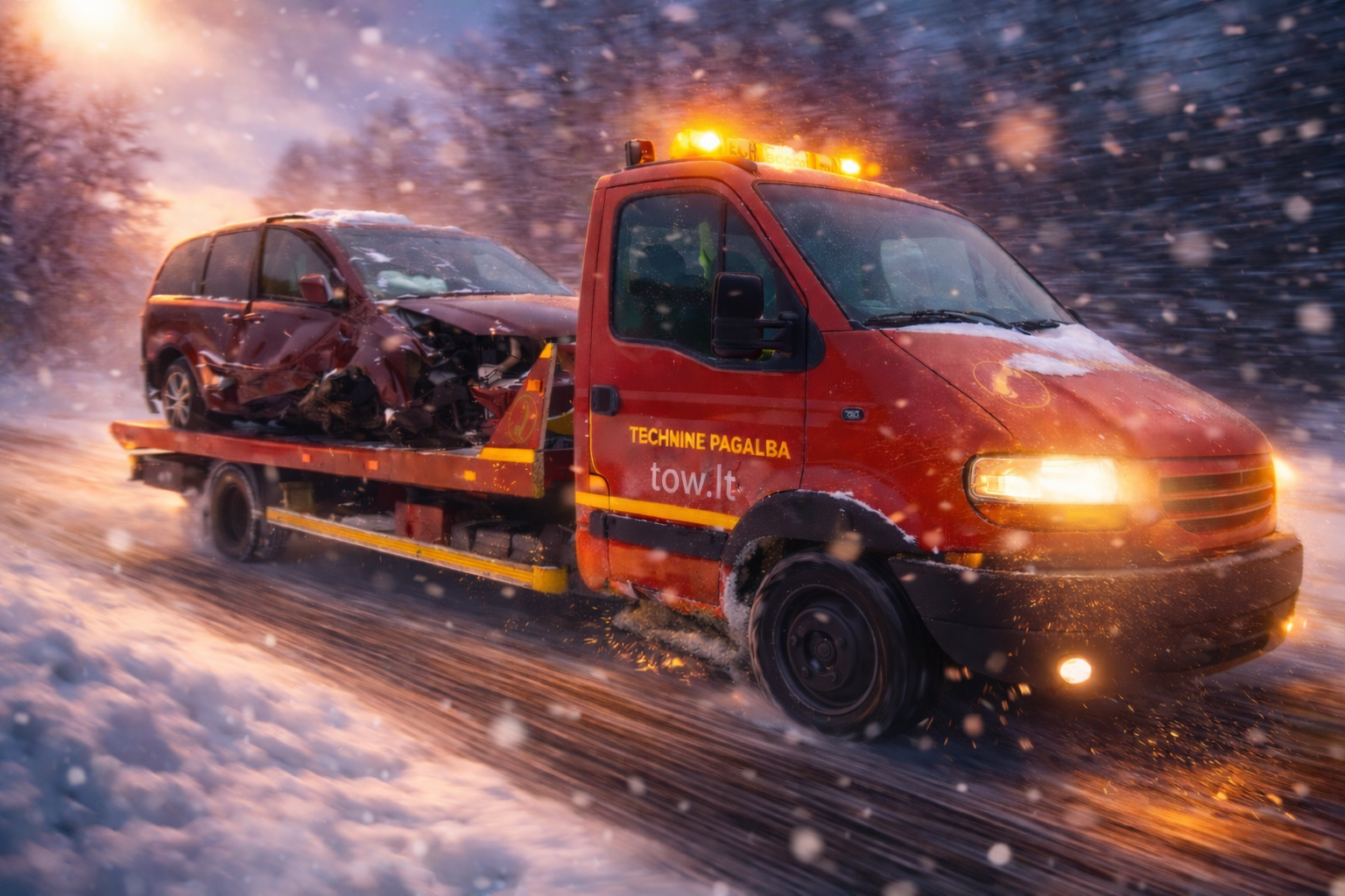 Mūsų tralas operatyviai atvyksta į įvykio vietą. Profesionalus vairuotojas saugiai paruošia jūsų automobilį pervežimui.
